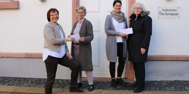 Im Rahmen der Durchführung des Rathausfestes im Münzenberger Stadtteil Gambach im Dezember 2022 haben die Verantwortlichen des Freundeskreises erklärt, wie immer zu verfahren; nämlich den erwirtschafteten Gewinn für Maßnahmen in der Burgenstadt zu verwenden. Der Vorstand hat den Betrag auf 1000 € aufgestockt und entschieden, mit dem Geld die drei städtischen Kindergärten und die Johanniterschule mit ihren zwei Standorten zu bedenken. Für jede genannte Einrichtung stehen somit 200 € zur Verfügung. Das Vorstandsmitglied Heike Bolz-Guckert (2. von links) überreicht der Bürgermeisterin der Stadt, Dr. Isabell Tammer, das Geld für die Kindergärten, die stv. Vorsitzende des Vereins, Steffi Kerschner (2. von rechts), übergibt den anderen Teil der Spende an die Schulleiterin der Johanniterschule Münzenberg-Gambach, Petra Müller.